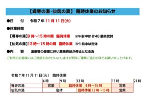 令和7年11月11日【導専の湯・仙気の湯】臨時休業のお知らせ