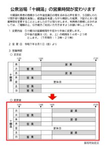 公衆浴場「十綱湯」の営業時間が変わります